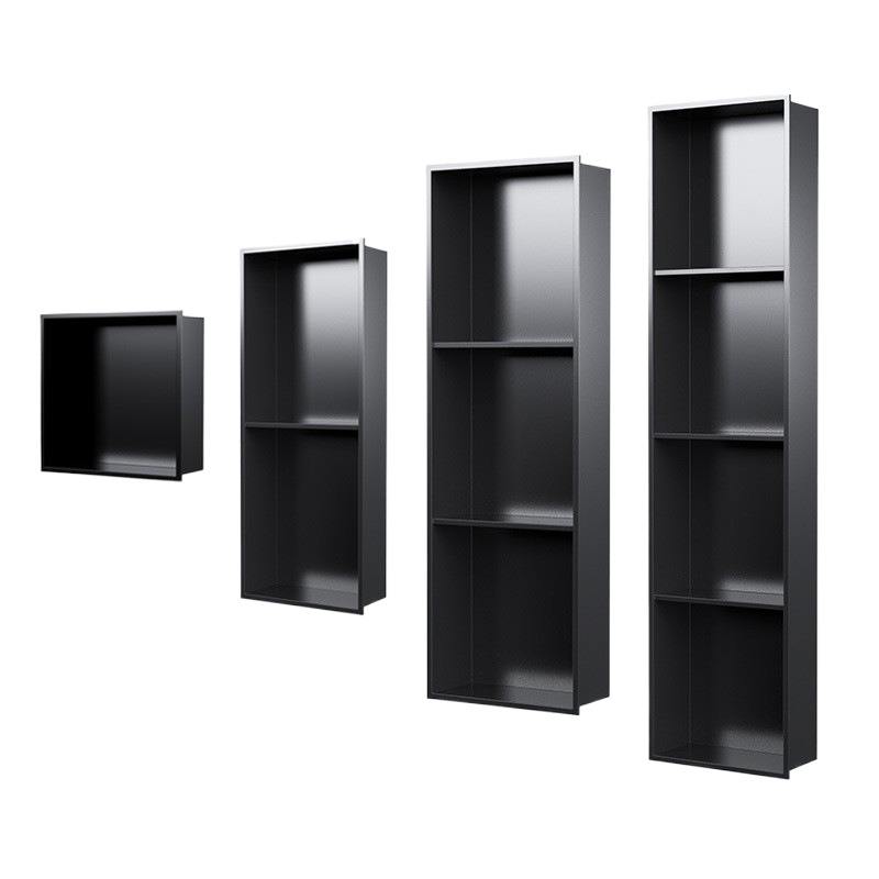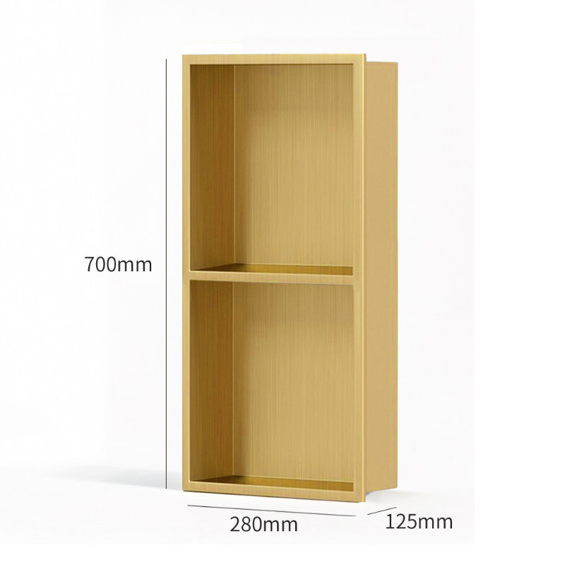 Stainless steel niche features an embedded design and is crafted from thickened premium stainless steel. It is moisture-proof, rust-resistant, corrosion-resistant and scratch-resistant, maintaining a brand-new look for long-term use. Adopting an integrated one-piece structure, it is stable and durable. With divided storage sections, it neatly holds toiletries, bathroom decorations, toilet paper and cleaning tools for easy access. Boasting a minimalist and versatile appearance, it combines practical storage with decorative appeal, making it an ideal choice for tidy and modern bathroom organization.