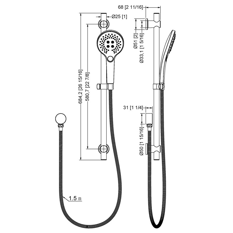 26 15/16"(684.21MM)Lifting rod and 1500MM 304 Stainless steel hoseStandar :