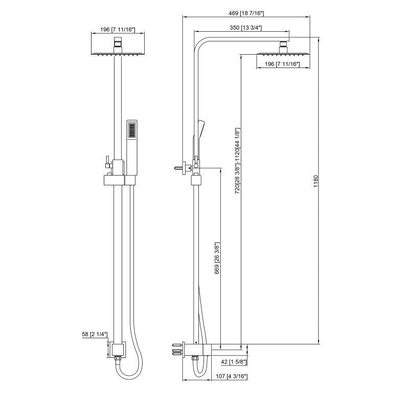 W18 7/16" H28 3/8" 8"Shower HeadStandar :