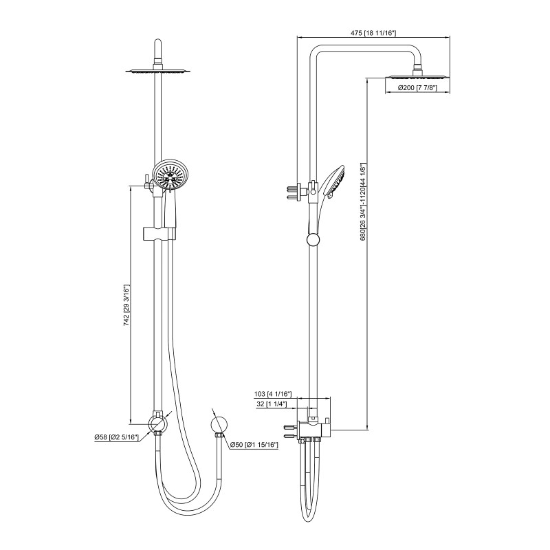 W18 11/16" H29 3/16" 8"Shower HeadStandar :