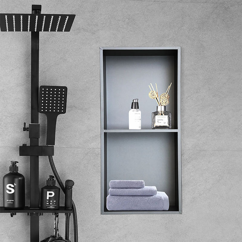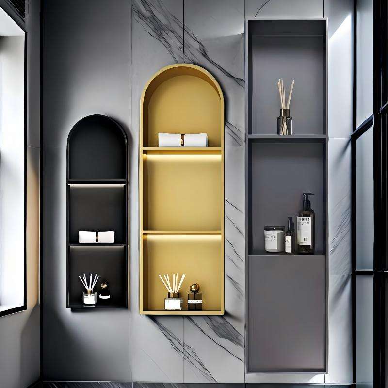 Embedded stainless steel niche is exquisitely crafted from high-quality stainless steel. It features moisture resistance, rust resistance, corrosion resistance and wear resistance, effectively withstanding humid bathroom steam. It resists rust and discoloration after long-term use, and stays clean and tidy with simple daily wiping. Designed with reasonable layered compartments, it offers large storage capacity and combines practical storage with wall decoration. Suitable for a variety of decoration styles, it is an ideal piece for modern bathrooms to achieve streamlined storage and create a neater living space.